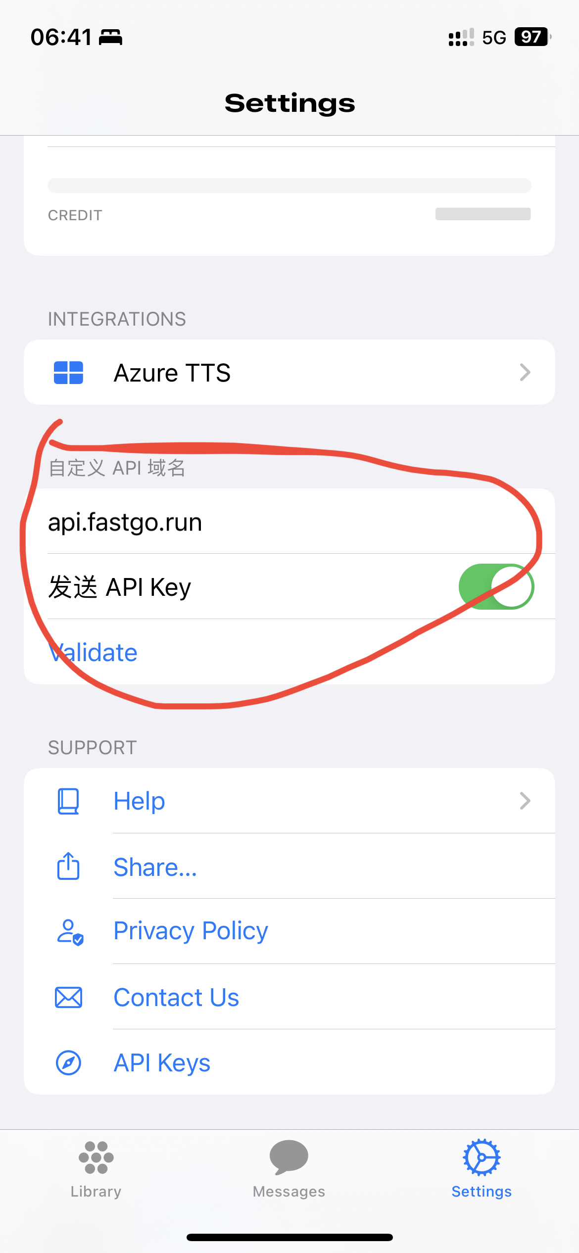 - 打开 APP,点击右下角 Settings 按钮,输入 API Key